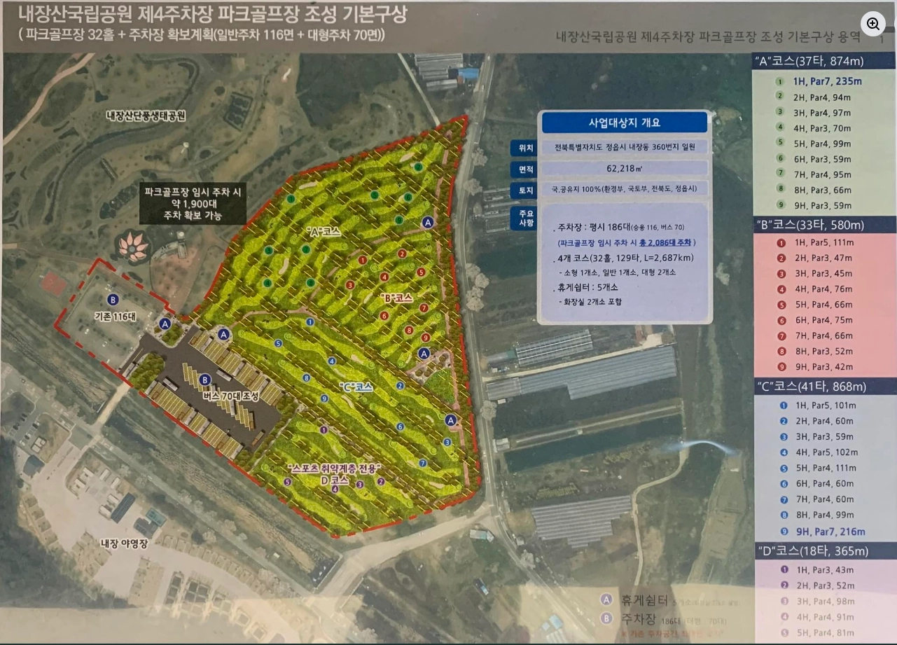 “내장산 제4주차장 <파크골프장 조성사업> 파란불